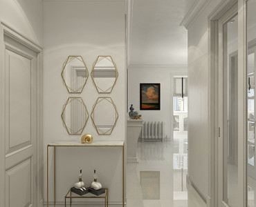 Квартира-студия 53 кв.м. для молодой девушки. Квартира задумана как белый холст для эклектического интерьера. Смешение классического, этнического стилей, стиля современной классики и элементов ар деко. Белый цвет служит прекрасным фоном для большого количества предметов искусства, находок в путешествиях, ярких элементов декора и мебели, наполняющие интерьер цветными акцентами. Белые стены, белый мраморный пол, белые поверхности мебели, зеркальные панно, - все это прекрасно отражает свет, визуально увеличивая небольшое пространство. Любимый цвет заказчицы синий кобальт выплеснулся яркими пятнами в интерьере. Единое пространство кухни-гостиной-спальни решено таким образом, что кухню и спальню можно всегда полностью спрятать за раздвижными зеркальными дверьми. Несмотря на небольшой размер, в квартире размещена довольно просторная гардеробная комната. В данный момент идет реализация проекта - ведутся ремонтное-строительные работы.