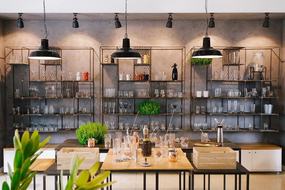 Дизайнеры использовали светлые оттенки и «голые» поверхности не случайно: товары и предметы декора таким образом выгодно выделяются на их фоне и задают настроение залу.