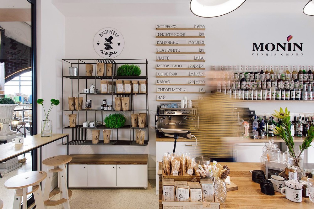 Месторасположение: Сумской рынок, ул. Культуры 8, Харьков, Украина функция: howroom барной посуды, аксессуаров, оборудования, сиропов Monin, кофейня Мастерская кофе программа: 50.9 кв.м статус: реализован (2016) заказчик: SQUEEZER архитекторы: Екатерина Яровая графический дизайн: Brainer фото: Александр Поддубный дата: сентябрь-ноябрь 2016