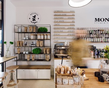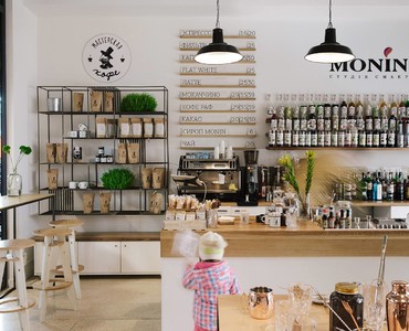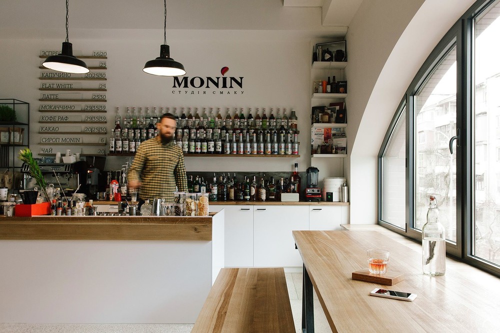 функция: howroom барной посуды, аксессуаров, оборудования, сиропов Monin, кофейня Мастерская кофе