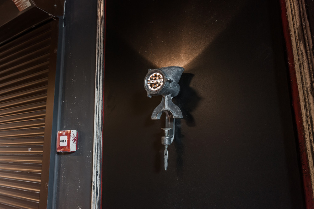 Бургерная планировалась в формате еда на вынос,с небольшим колличеством мест у барной стойки. Задача заключалась в том,чтобы минимальными средствами сделать максимальный эффект.Практически все материалы были на складах,от старых строек, и пылились там несколько лет. Купили только напольную плитку и подвесные плафоны. Цетральный элемент заведения,деревянное пано,осталось невостребованным от предыдущей стройки.Нанесли трафарет и оно стало формирущим интерьер декором.