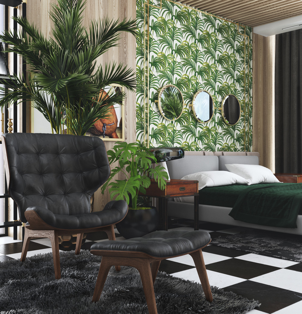 Проект создан в свободное от работы время,просто для себя,для выплеска своих творческих желаний.Идеей и вдохновением послужила книга Фицджеральда ''Ночь нежна'',именно так в моем представлении выглядела комната отеля на берегу Ривьеры.В интерьере очень много деталей,которые могут многим показаться не совместимыми,но в моем представлении именно так выглядел интерьер 30х годов,без предрассудков, лишенный логики и прагматичности.В отделке используется дерево и обои с ярким принтом пальм.Много растительности в интерьере передает солнечное настроение курорта и отдыха.Одним из главных элементов декора интерьера стала картина американского художника Вэлтона Форда,не смотря на то что картина современная,она передает общее настроение интерьера и вписывается в общую концепцию.Интерьер наполнен множеством деталей что заставляет обратить на него внимание и рассматривать каждую его составляющую.