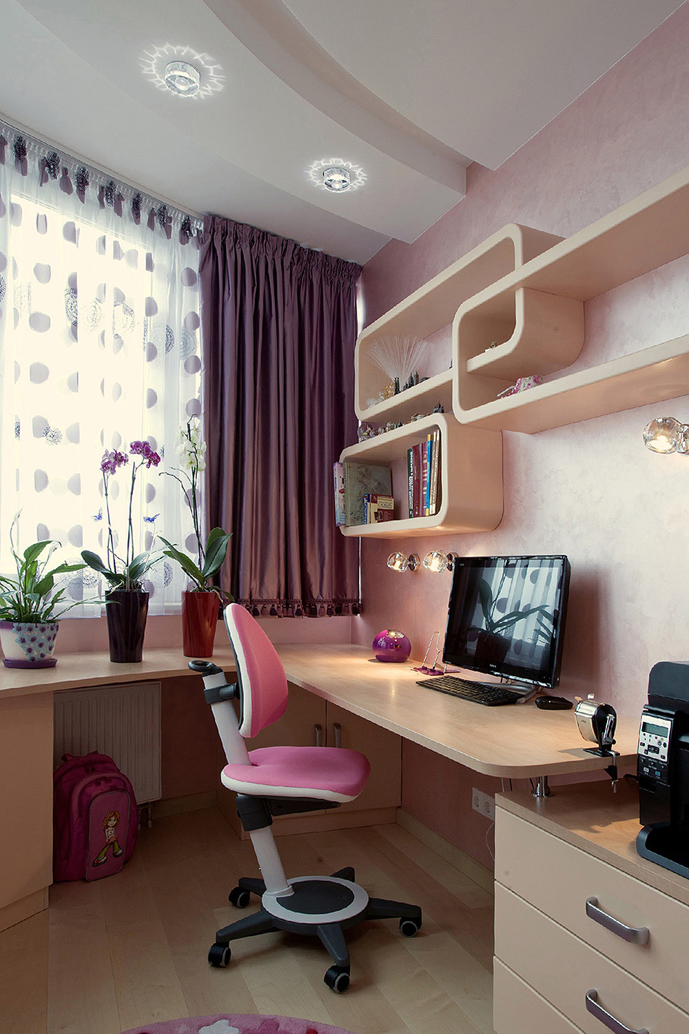 Строгость цветовой палитры раскрепощена в детских комнатах. Здесь разыгрывается триада основных цветов – красного, синего, желтого, среди которых визуально доминирует стилеобразующий красный. Такой выбор несомненно оправдан, поскольку в поле зрения детского глаза необходима игра всей гаммы цветового спектра.