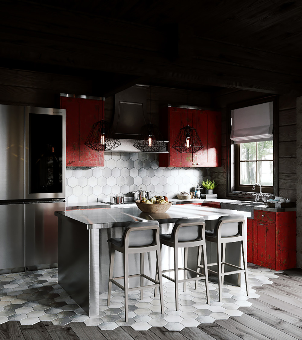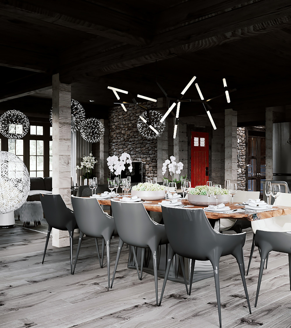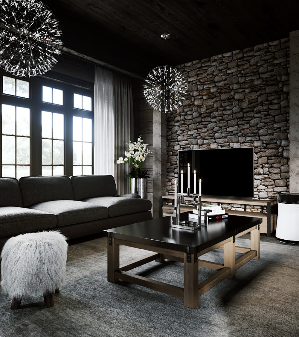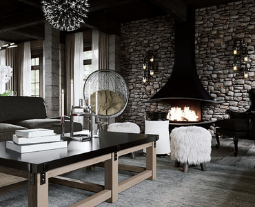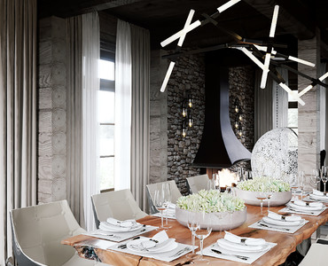 Этот интерьер – крепость, островок стабильности и тепла. Независимо от погоды за окном здесь царит покой и размеренность. Созданию уютной обстановки способствует и природная цветовая палитра и натуральные материалы и, конечно, камин. Нарочито приближенные друг к другу тона привлекают больше внимания к фактурному разнообразию. Дерево с подчеркнутой естественной красотой, четкие линии металла, брутальный камень, несут чистую энергетику. А максимально открытая планировка, способствуя большей диалогичности между материалами, дает много пространства для движения этой энергии. Красиво стареющие отделочные материалы, специально состаренные поверхности, современные детали и передовые технологии – телевизор, холодильник, климатический комплекс от LG SIGNATURE – создают комфортный, функциональный и вместе с тем живой интерьер.
