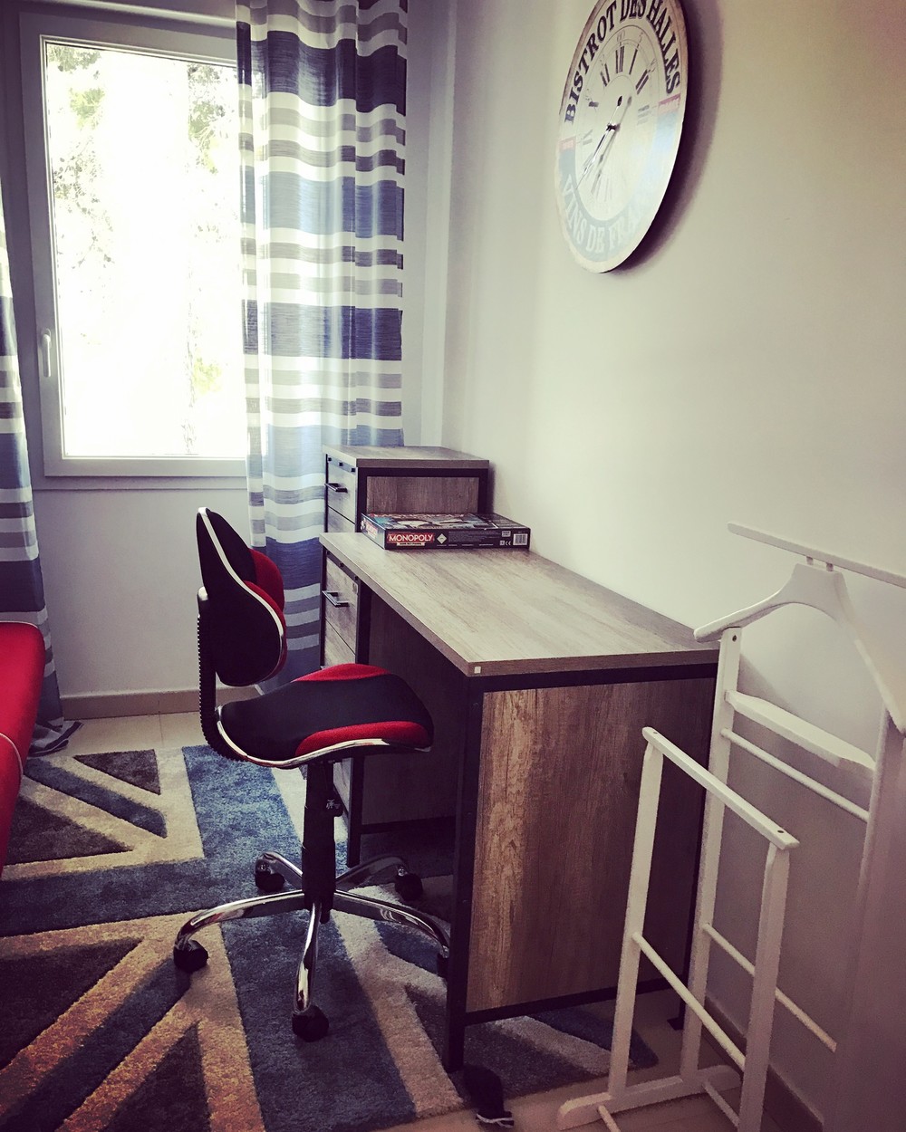 Современный стиль, простота оформления и интересные детали в виде картины, часов, освещения, помогают сознать единое и не перегруженное пространство.