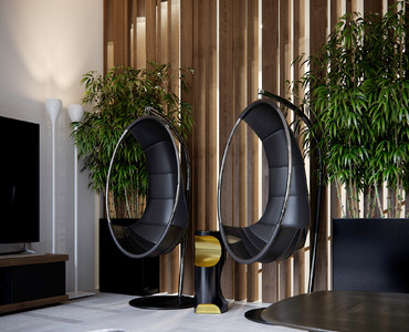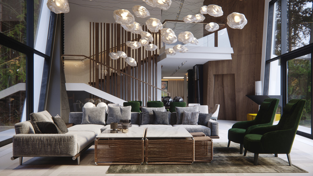 Трехэтажный дом для большой семьи. Площадь - 750 м2. Современная архитектура дома, криволинейная по горизонтали и вертикали, задала основную идею и концепцию внутреннего оформления - подчеркнуть криволинейность, сохранить геометрическую целостность и минимализм, добавив при этом уют и эргономику. Одна сторона дома выходит на еловый лес, поэтому в отделке использованы фактуры, цвета и материалы, которые дополняют эту атмосферу леса и природы. Проект на стадии реализации.