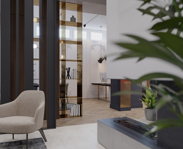 Компания занимается поставкой элитных отделочных материалов и мебели. Простаранство разбито на рабочие зоны, зона для переговоров, зону отдых и кухню. Офис так же используется в качестве демонстрации ассортимента , и нестандартного мышления))