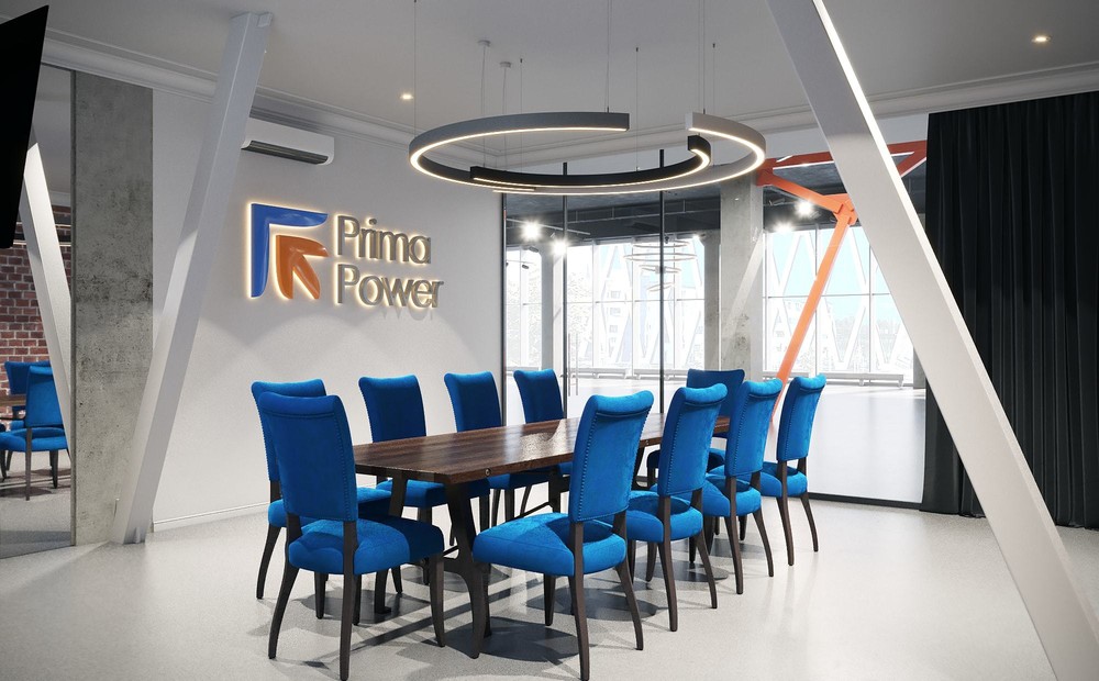 Офис и выставочное пространство для итальянской компании Prima Power. Компания занимается производством и поставкой станков для резки металла.