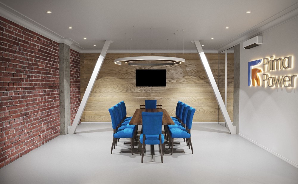 Офис и выставочное пространство для итальянской компании Prima Power. Компания занимается производством и поставкой станков для резки металла. Необходимо было спроектировать демонстрационный зал с различными уровнями освещения, переговорную для встречи с партнерами, помещение для персонала и офис для постоянных сотрудников комплекса. При разработке интерьера отдавалось предпочтение открытому, "прозрачному" пространству, натуральным материалам, нескольким видам освещения. Общая площадь 1025кв.м Объект реализован в 2017г.