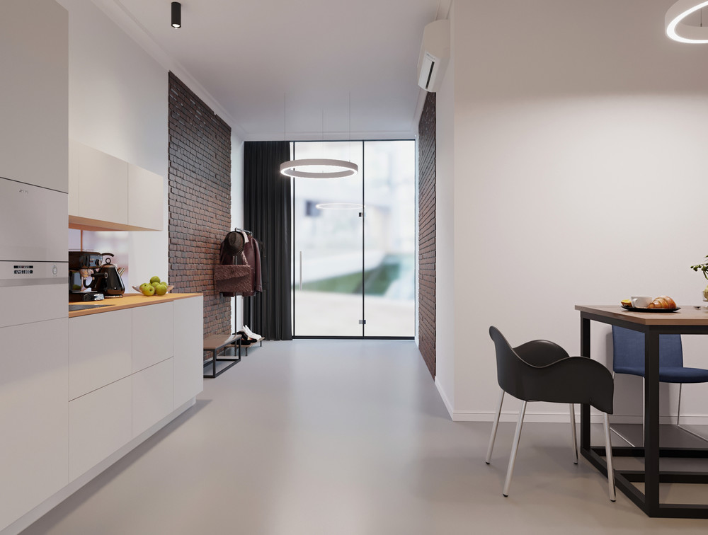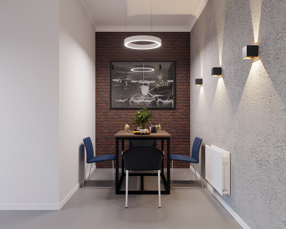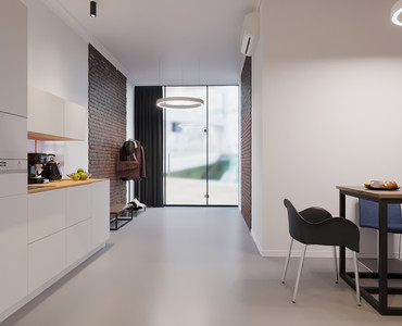 При разработке интерьера отдавалось предпочтение открытому, "прозрачному" пространству, натуральным материалам, нескольким видам освещения.