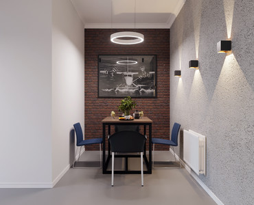 Необходимо было спроектировать демонстрационный зал с различными уровнями освещения, переговорную для встречи с партнерами, помещение для персонала и офис для постоянных сотрудников комплекса.