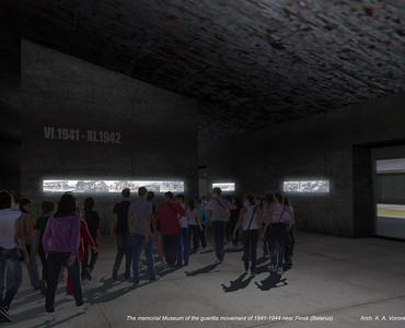 Концепция мемориального музея партизанского движения ВОВ под Пинском (Белоруссия) с полностью интерактивной экспозицией.