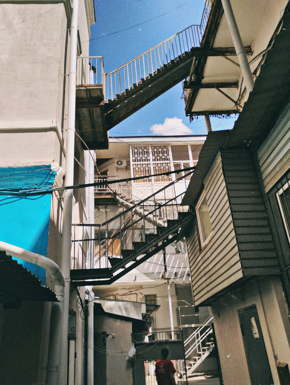-Задворки дома №46, в Газетном переулке, где сотню лет назад, доходный дом, сменился на богемную тусовочку и маленькую сцену подвала поэтов. На ней выступал «Председатель земного шара». Затем пришла дурная слава, под светом «красных фонарей», в период НЭПа. Позднее тут звучал немецкий пьяный гомон и играли в карты - что то вроде казино. А уже в сорок пятом это был единственный платный туалет города - лежавшего в развалинах. В 80-х, богемные маргиналы показали здесь свой «Провинциальный авангард»