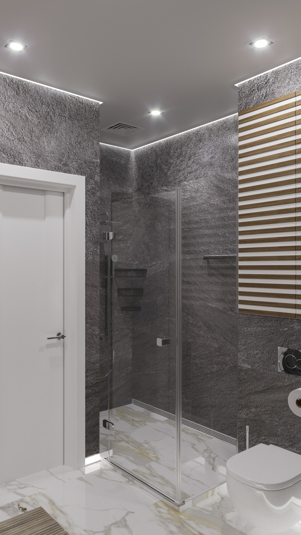 Светлые апартаменты — всегда отличная идея для отдыха от серых будней! Проект в Таганроге в современном стиле с использованием фактур кирпича, дерева и натурального камня, совмещённых с акцентным цветом берлинской лазури. Именно выключатели серии Sequence 5 от Schneider Electric подчёркивают стиль данного помещения и ненавязчиво дополняют его.