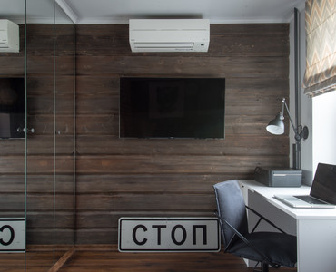 Номинация "Многое в малом" Комната для молодого человека 19 лет. При перепланировки квартиры студенту досталась комната площадью 11 кв.м. вместо прежних 14. Несмотря на маленькую площадь, удалось разместить все необходимое для комфортной жизни: вместительный шкаф для одежды с зеркальными фасадами, большую кровать, рабочий стол и дополнительные места хранения. При этом помещение не выглядит перегруженным, так как шкафы встроены в ниши, а вся мебель, пол и потолок выкрашены в один цвет. Зеркало напротив окна добавляет свет и работает на визуальное увеличение пространства.