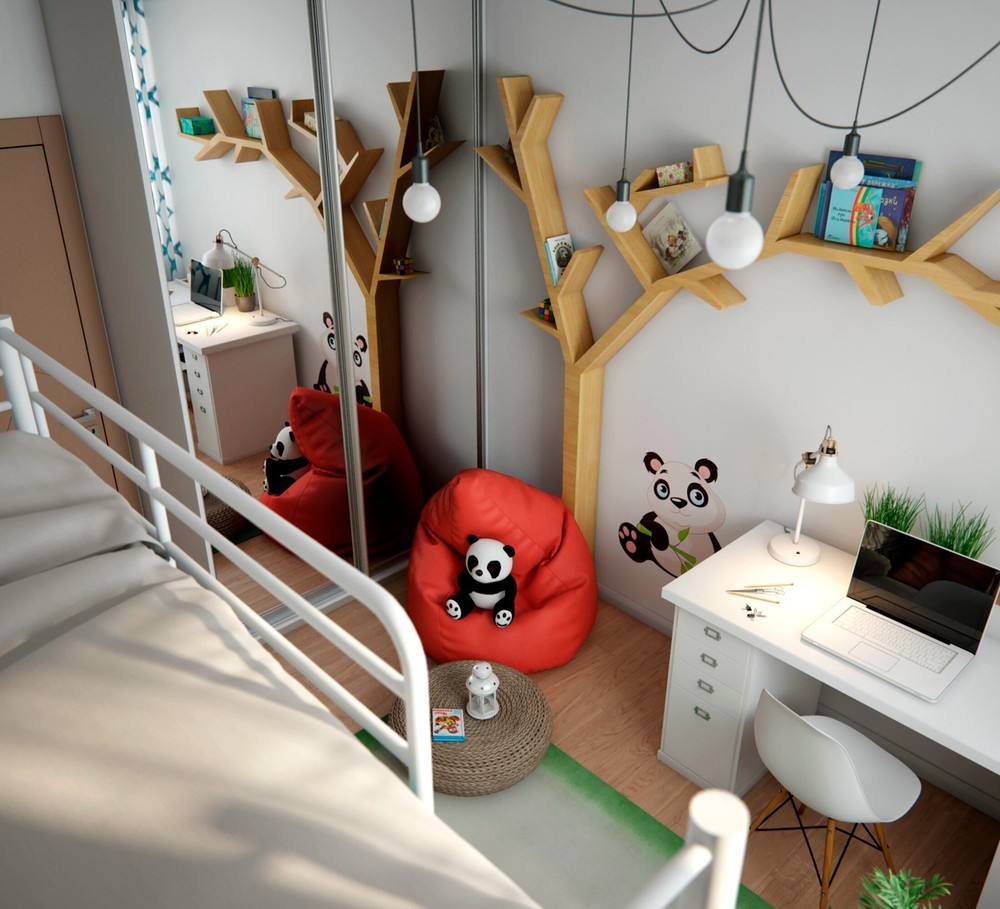 Проект детской для девочки 10 лет. Она сама написала мне все пожелания к будущему интерьеру, вот основные: - светло - панда - китайские фонарики - 2-этажная кровать - карта...