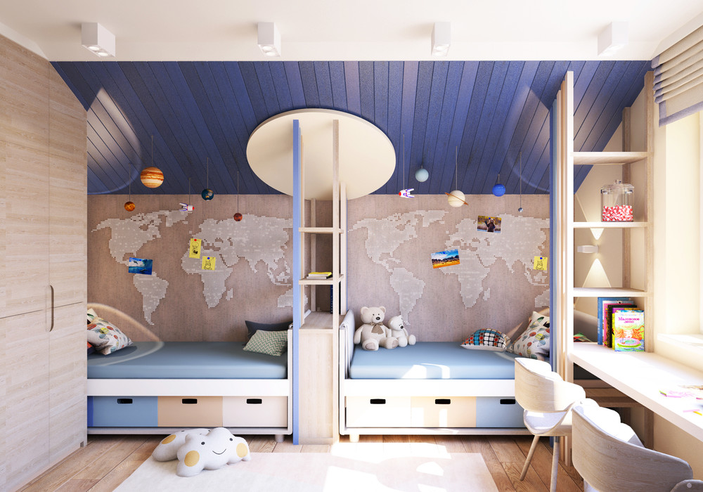 Детская комната для двух любознательных деток, увлеченных астрономией и географией.