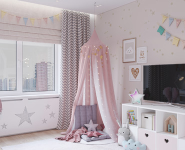 Я как мать двоих деток, с особым трепетом создала такую нежную, уютную детскую для девочки 6 лет, как собственный волшебный уголок, со вторым ярусом, балдахином, мягкой зоной, рабочим местом и гардеробом.