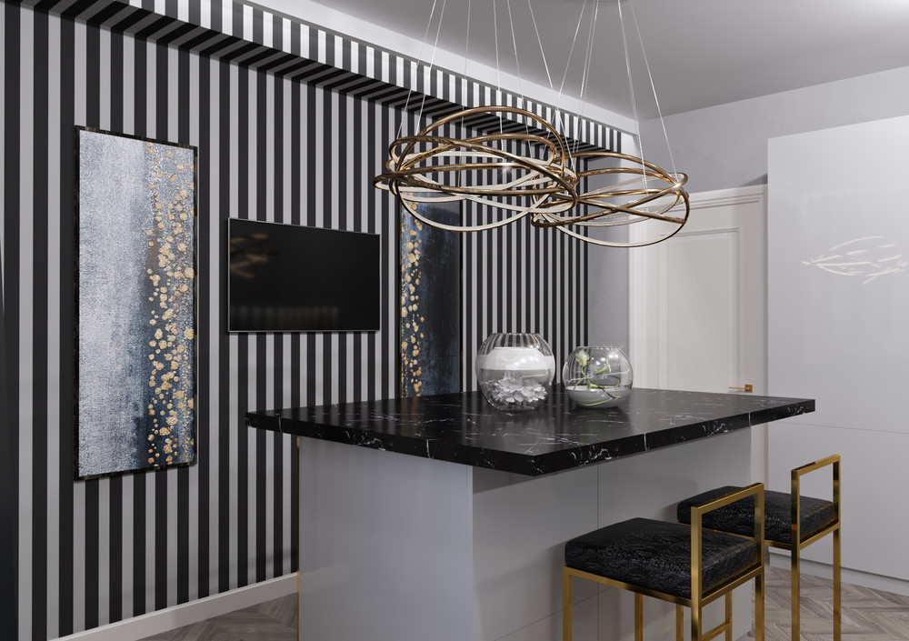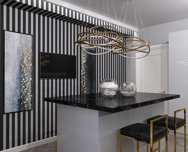 Кухня - это фон. Это фон для нашего настроения. Это образ жизни. В этом проекте серые фасады, скрывающие за собой большое количество самой современной техники - как фон для черно-белой графики. Но графика эта не аскетична, она в золотой раме. Пентхаус в Махачкале (реализован)