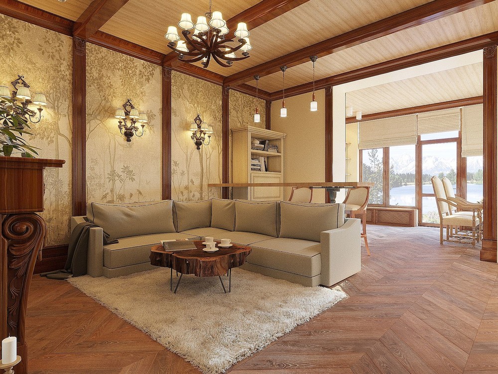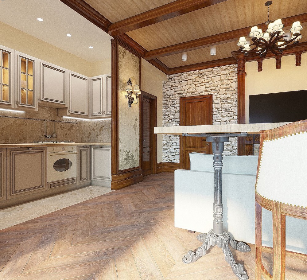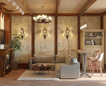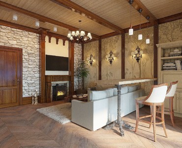 Когда мы обсуждали тех.задание и я расспрашивал о пожеланиях, задачах, предпочтениях , прозвучала интересная фраза:"- Леша, знаешь, что то типа такого уютного "Лофта"). Как то на ум сразу пришел стиль"Шале", идеально подходящий для загородного дома . И я не ошибся! Эскизы интерьера были приняты на "Ура!!!"