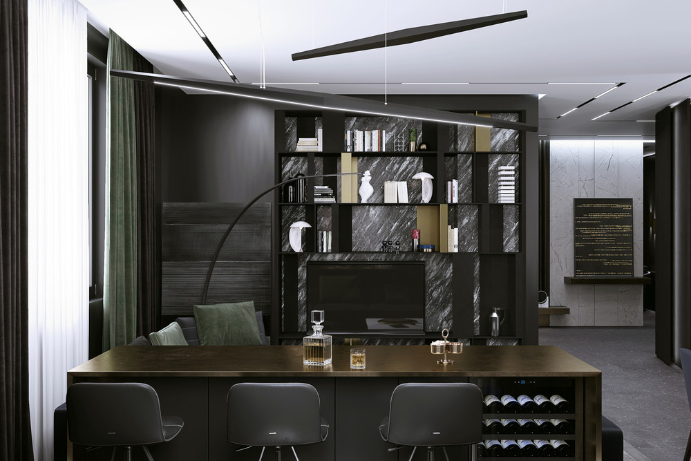 Среди всех гостиных эта отличается своим месседжем "ни каких гостей". Гостинная для эгоиста, где каждый метр служит лишь одному хозяину. Номинация - «Мебель для гостиной»