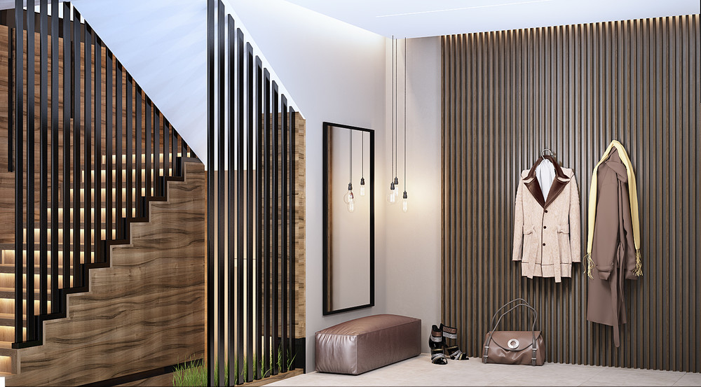 Интерьер имеет четкие границы - все дробиться на зоны потолком. Камин и телевизор размещены в коробе из шпонированного ДСП. Интерьер сложный по материалам, но все находиться в гармонии.