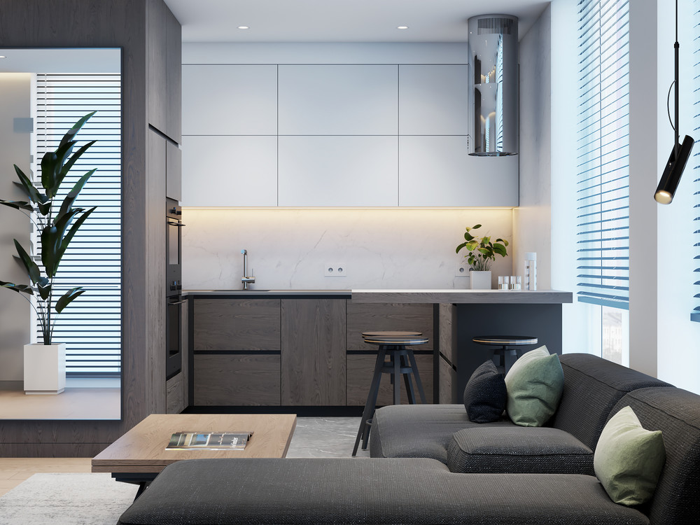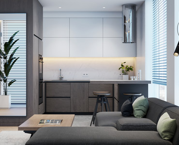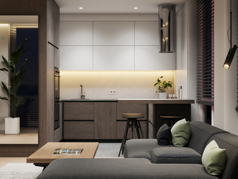 Дизайн проект кухни - гостиной площадью 21.7 м2.