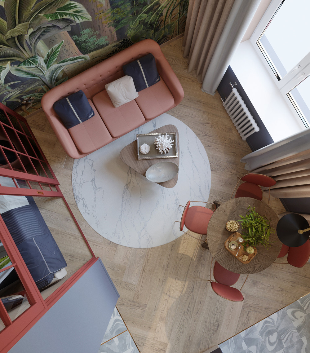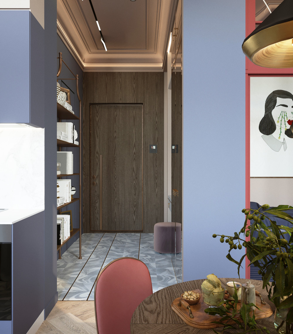 Дизайн-проект этой компактной студии сделан для одной очень активной и жизнерадостной девушки. Она яркая,жизнеутверждающая, но не лишена тонкости и деликатности.. Да, да! Это я о квартире!:) Хотя, интерьер-это наше отражение, наше второе "я". Одной из отличительной черт нашей квартиры является то, что мы смогли, при достаточно небольшом метраже, отделить спальню от зоны для гостей, сделав её отдельным помещением. При входе нас встречает красивый холл и отдельная гардеробная за дверью. В этом проекте мы добились не только эстетики, но и грамотного эргономичного функционала. Площадь квартиры 29,5 м.кв.