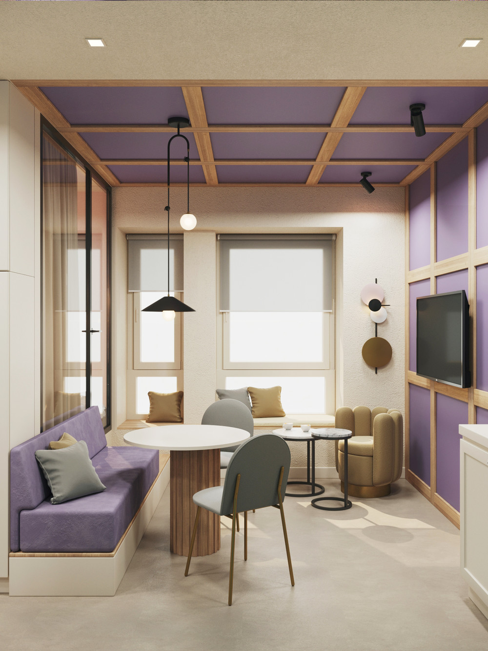 Компактная квартира 30 квадратных метров в стилистике из сериала "Друзья" в современном прочтении. Несмотря на маленькую площадь здесь поместилась и полноценная ванная и много мест хранения и отдельная спальня и кухня-гостиная. Квартира предназначена молодой девушке, которая любит собрать у себя компанию близких друзей. В дизайне применен принцип "color-blocking", большинство мебели будет изготавливаться на заказ, журнальные столики Dantone Home.