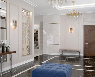 Загородный дом, площадью 1100 м2, в г. Москве. Находится на стадии реализации. В проекте использованы мебель и светильники таких марок как: Minotti, Baker, Eichholtz, Magneti Marelli, Terzani Atlantis