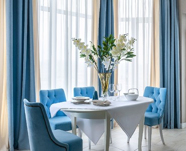 В отношении стилистики заказчиками был задан курс на современную классику. Пастельные тона, песочно-бежевые оттенки, мебель цвета слоновой кости – общее цветовое настроение, которое хотели видеть хозяева в своем интерьере. Для кухни-гостиной ими сразу был выбран воздушно-голубой оттенок. Задачей было спроектировать лёгкий, мягкий интерьер с ощущением «воздуха», лёгкости и открытости пространства, используя классические формы в современном прочтении.