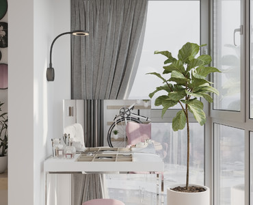 Обилие света- отличает это пространство от других. Солнечная сторона и угловое расположение, стали преимуществом с качественными окнами Veka Softline с многофункциональными солнцезащитными стеклопакетами. Именно они позволяют комфортному, естественному свету быть пространстве.