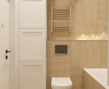 24-метровая квартира-малютка предназначена для сдачи в аренду. Поэтому основным пожеланием было использование износостойких материалов и технически простых решений. Слева от входа в квартиру расположена гардеробная, скрытая раздвижной перегородкой, – это основное место хранения.