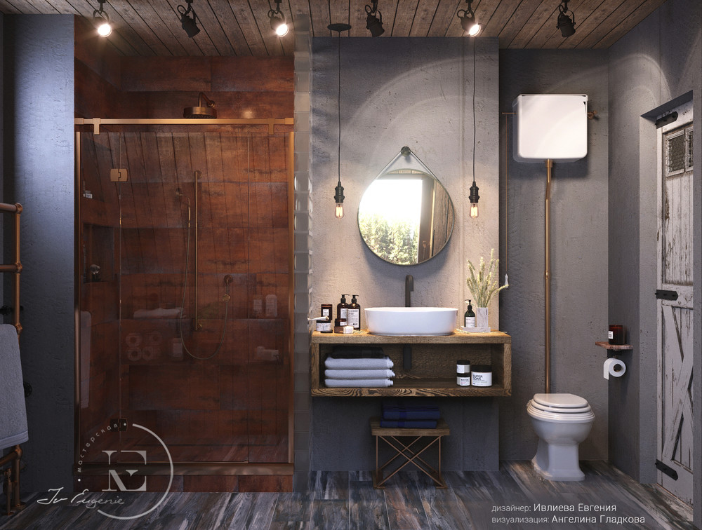 Интерьер загородного дома совмещает в себе несколько стилей. Первый и второй этаж близок к классическому стилю. Мансарда несколько отличается по стилю и колориту. Это подростковая зона для отдыха и тусовок в стиле Лофт. Особое предпочтение отдается индивидуальному декору (мебель, освещение). Натуральное дерево и кирпич так же занимает здесь особое место, но служит скорее фоном, чем акцентами в отличие от первого и второго этажей. Здесь по праву можно отнести дизайн к направлению Модерн.