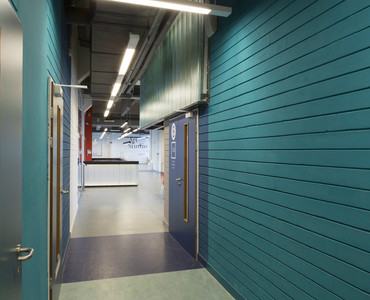Авторы проекта: Арсений Леонович, Никита Токарев, Мария Саксон. Учебные помещения Московской Архитектурной школы (МАРШ), Московской школы кино (МШК) и Британской высшей школы дизайна входят в один образовательный хаб творческих индустрий. Часть помещений (учебные аудитории и студии) используется каждой школой индивидуально, а большая аудитория, кафе, холл, административная зона используются совместно. Объединение под одной крышей нескольких направлений образования позволяет преподавателям и студентам разных школ свободно общаться между собой и создает новую среду обучения в контексте актуальной художественной культуры. Основной материал, который использовался для публичных помещений – это стекло и стеклопрофилит. Стеклопрофилит фирмы Pilkington был выбран как напоминание о промышленном прошлом здания (МАРШ расположен в центре дизайна «ARTPLAY» на бывшей фабрике) и за его конструктивные и эстетические свойства. Из матового стеклопрофилита сделаны стойка рецепции и бар, а также антресоли, где находятся офисы МАРШ и МШК. Благодаря полупрозрачности стеклопрофилита, офис МАРШ, расположенный в учебных помещениях, визуально принадлежит холлу и является своеобразным «театром теней» для студентов - посетителей кафе. Учебные студии МАРШ разгорожены шторами, что позволяет их объединять в одно помещение в зависимости от потребностей учебного процесса. Важную роль в интерьере играет цвет. Помещения каждой школы маркированы своим цветом: синий принадлежит МАРШу, оранжевый - Британской Высшей Школе Дизайна, зеленый - Московской Школе Кино. Таким образом, интерьер «рассказывает» о своем наполнении. Общая площадь: 1100 кв.м. Год реализации: 2012 г. Фотограф:Антон Демидов