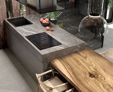 Кухня в частном доме г.Саратов. Кухня как в общем то и весь интерьер дома выполнен в Балийской стилистике. Небольшая площадь 1го этажа и непосредственно зоны кухни и гостиной, и тот факт, что они фактически являются одним общим пространством, сформировал размер и конфигурацию кухни. Учитывая пожелания Заказчика, была разработана уникальная конструкция острова с выдвижным столом. И хотя это конечно не Бали, но это солнечный Саратов, это СанСара.