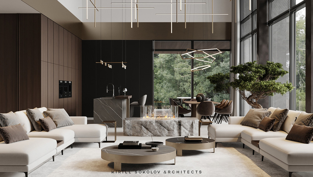Представляем Вам потрясающий взгляды, современный интерьер виллы, который команда наших архитекторов разработала для молодой семейной пары, проживающей в городе Москве. По цветовой колористической палитре, выбору отделочных материалов и премиальной мебели можно многое сказать о характере и предпочтениях заказчиков, людям, уделяющим внимание деталям, стилю и современным веяниям моды. Любовь к свободному пространству – одно из них.