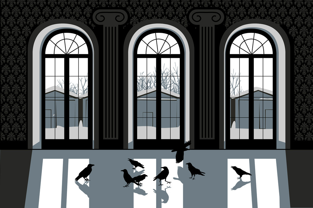Монументальная архитектура дворца — власть и церемониальность, контрастирующая с урбанистическим, функциональным гаражом, который отражает современную повседневность. Светотень усиливает напряжение: холодный дневной свет обнажает линии и фактуры дворца, тогда как гараж приближается к зрителю своей приземлённой прагматичностью. Передний план занят птицей — вороной, выступающей свидетелем времени и перехода между двумя типами пространства; её присутствие подчеркивает тему неоднозначности статуса и самой концепции Иллюзии совершенства: дворец как символ элитарности, гараж — символ повседневности и экономической функциональности, создавая иллюзию единой гармонии, которая на деле оказывается разорванной. Векторная графика, Adobe Illustrator