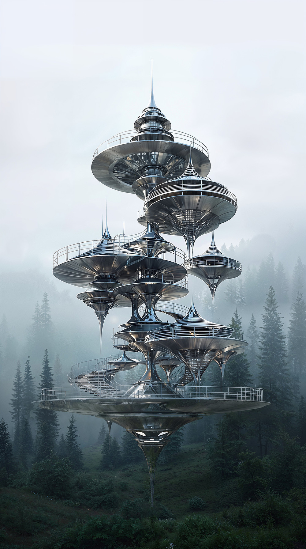 ЛГМ-01 — «Левитирующий гироскопический модуль» Любое архитектурное сооружение — это диалог между природой и технологией. Обычно город начинается с вытеснения ландшафта: сначала исчезает трава, вырубаются деревья, и только затем возникает дом, квартал, город. Позже архитектура пытается вернуть утраченное парками и благоустройством. Но можно ли представить форму существования, которая не требует этой жертвы вовсе? Дома на сваях давно известны человечеству, однако их трудно назвать идеалом: они всё равно глубоко входят в землю и подчиняют себе рельеф. Отсюда возникает мысль о другом типе архитектуры — о независимом слое жизни над природой, где человек может существовать, не разрушая почву, лес и горизонт. Отправной точкой для этой работы стал образ волчка — предельно простой формы, в которой вращение рождает устойчивость. Меня вдохновил и реальный инженерный прецедент: гироскопический монорельс Луиса Бреннана, в котором два встречновращающихся гироскопа стабилизировали вагон на одном рельсе. «Левитирующий гироскопический модуль 01» — это архитектурная фантазия о пространстве, где устойчивость создаётся не фундаментом, а движением. Модуль балансирует подобно волчку: его механизмы скрыты внутри, а внешняя форма лишь проявляет внутреннюю логику равновесия. Он способен зависать над ландшафтом, менять высоту, перемещаться и лишь временно соприкасаться с землёй, почти не оставляя следа. Несколько таких модулей могут стыковаться между собой, образуя фрактальную систему — временный город без жёстких границ и навсегда закреплённого центра. В этом образе есть отголосок фантастической традиции — от летающего острова Лапута у Свифта до «летающих городов» XX века, — но мне важно перевести фантазию в область почти убедимой инженерии. Отражающий металл возвращает природе её собственные цвета, растворяя объект в среде. Вращение здесь становится не только физическим принципом, но и метафорой времени: совершенство никогда не достигается окончательно, оно удерживается лишь в непрерывном балансе между мечтой и реальностью. Именно в этом хрупком равновесии и возникает иллюзия совершенства. Инструменты создания: 3Д моделирование в Cinema 4D, коллажирование в Adobe Photoshop, ИИ: Nano Banana 2, Seedream 4.5, Chat GPT, Grok Imagine Image.