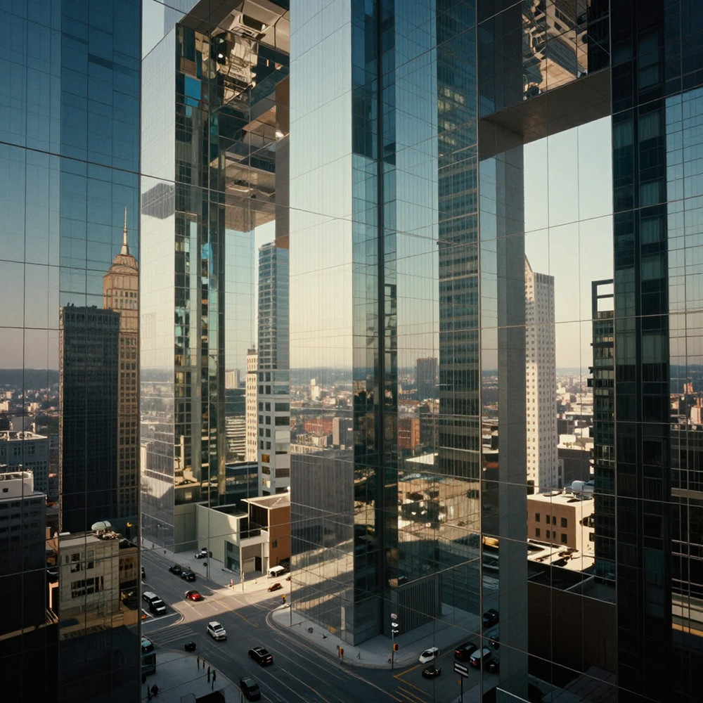 «Иллюзия пространства» показывает, как современная городская среда меняет наше восприятие реальности. Отражения в стеклянных фасадах создают эффект наложения, при котором город одновременно существует в нескольких измерениях — реальном и зеркальном. Эти визуальные пересечения формируют ощущение нестабильности, в котором привычное пространство утрачивает свою целостность и предсказуемость.