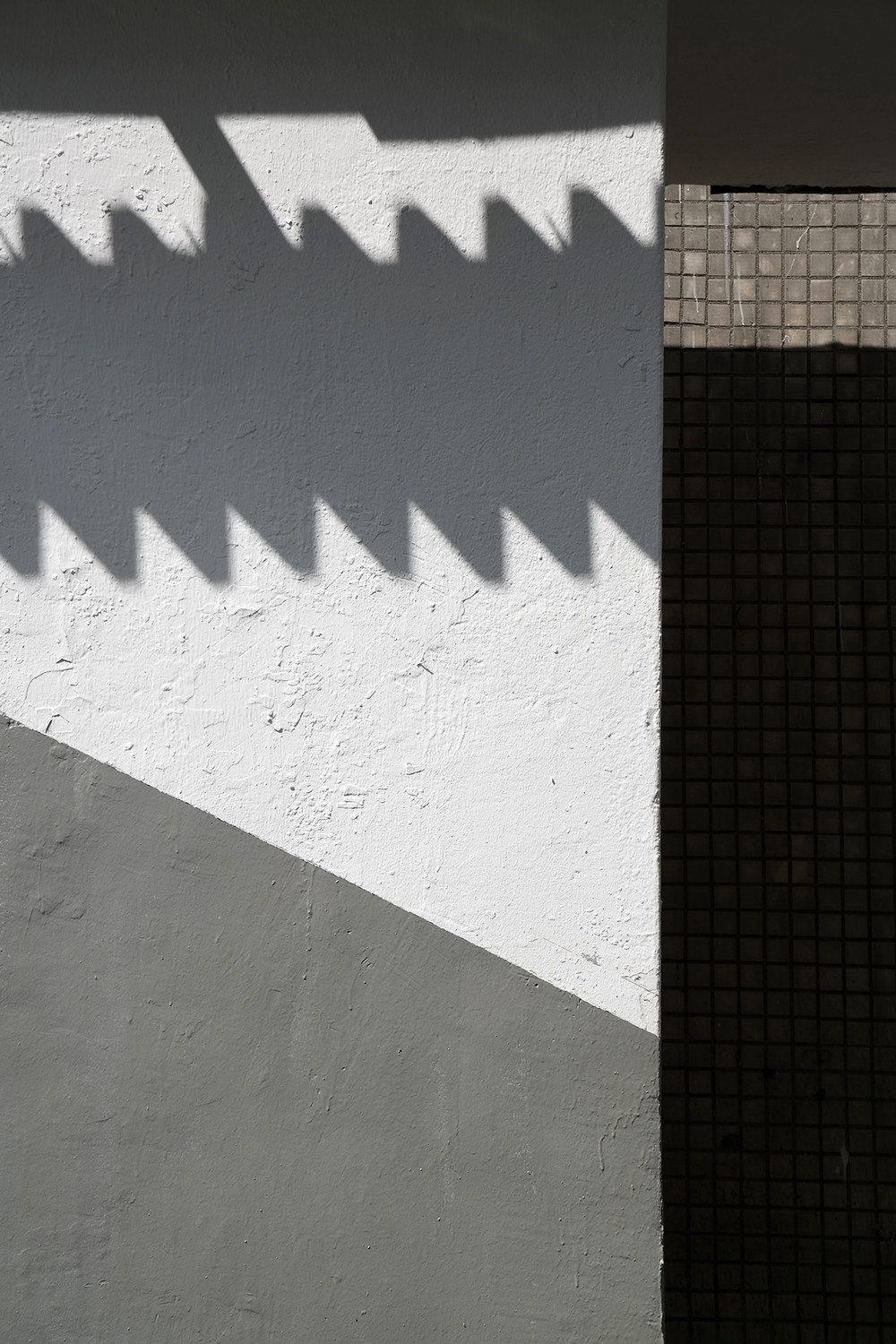 Свет и тень занимают центральное место в проекте. Контраст между яркими плоскостями и темными тенями подчеркивает структуру, превращая освещенные поверхности в световые блоки, а тени — в визуальные границы и объём. Наблюдатель видит, как свет формирует рельеф города, выделяя пропорции, линии и повторение форм, и как тень становится частью архитектурной композиции, а не только фоном для неё. Цветовая палитра ограничена — акцент на контрасте света и тени для подчеркивания структуры, при этом сохраняется минималистическая эстетика и ясность контура.