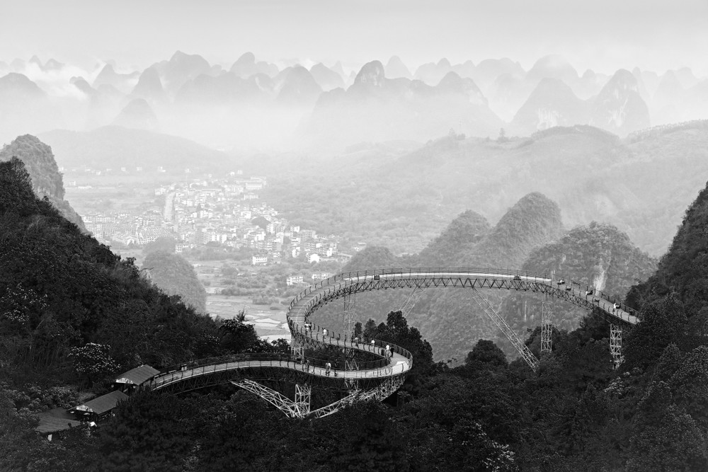 Во время путешествия по Южному Китаю в 2025 году в горном парке на пике Ру-И мне удалось запечатлеть стеклянный мост. Это чудо современной архитектуры. Мост словно парил над землей и создавал ощущение легкости, невесомости конструкции. Его извилистая форма очень гармонировала с формами окружающих гор, что создавало прекрасный ансамбль природной и рукотворной красоты.