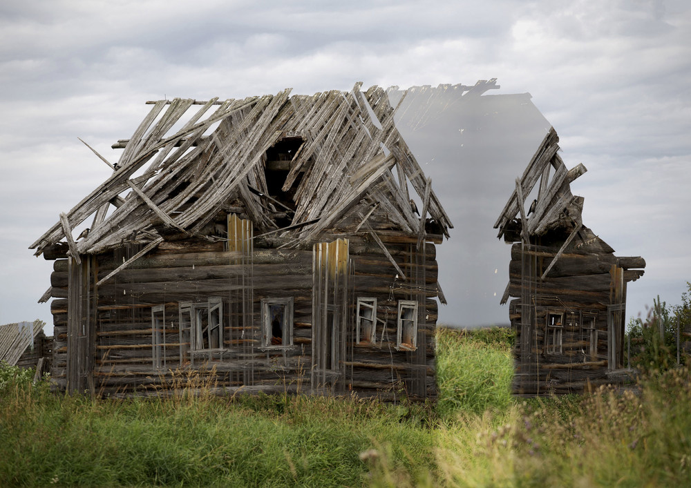 Трансформация традиционной деревянной архитектуры. Усиление взаимосвязей каждого элемента. Работа на основе фотографии традиционной деревянной архитектуры, показано взаимодействие природной формы и объекта, созданного человеком. Портал в мир, который частично утрачен. Фрактальные повторения утрат архитектуры, трансформируются в новое измерение архитектуры дома - портал. При создании работы использовал KPT Effects набор плагинов для Photoshop, фильтр Hyper Tiling, который предназначен для создания сложных калейдоскопических узоров и повторяющихся абстрактных форм.