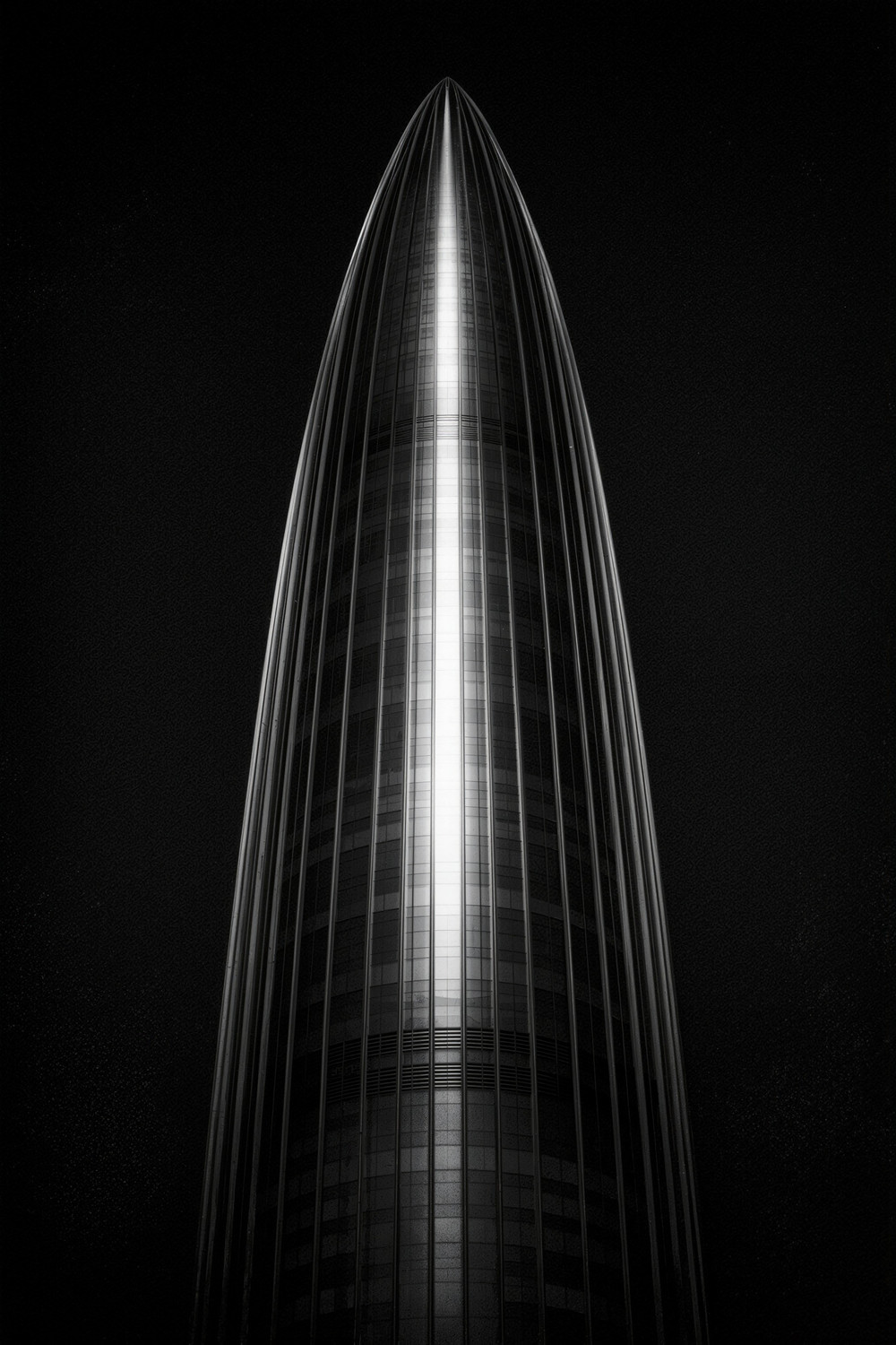 Современная архитектура - поиск предельной формы. В работе «Абсолют» здание становится символом чистого стремления к идеалу. Башня - это вертикальный знак, концентрирующий взгляд вверх, к абсолютной форме. Симметрия и световая ось делают архитектуру архетипом совершенства. Чёрно-белая графика подчёркивает структуру: реальность здания исчезает, остаётся образ чистой формы. «Абсолют» - это иллюзия архитектурного совершенства, где пространство, свет и форма сливаются в идею. Локация: Башня Чайна-Ресорсез, Шэньчжэнь, Гуандун, Китай Инструменты: пленочная камера Nikon FE, Silberra U400 35mm Film, Adobe Photoshop