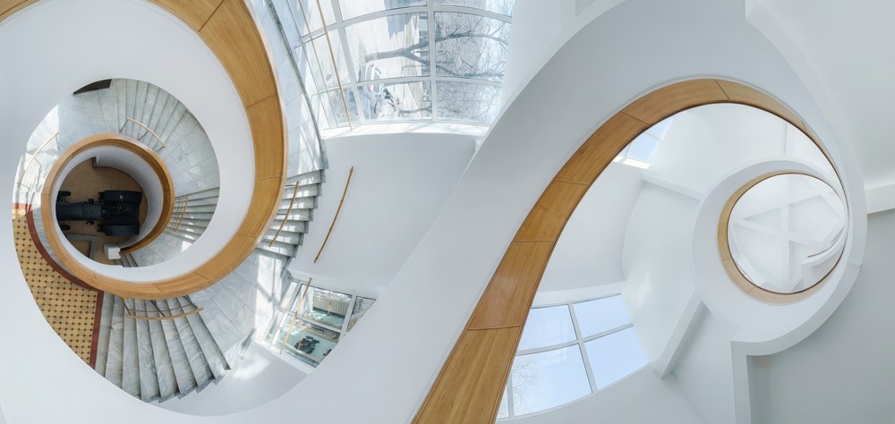 Фотография была сделана на iPhone с эффектом панорамы, но по вертикали. Именно так получился эффект совмещения двух точек схода. Также была применена небольшая ретушь и цветокоррекция в PhotoShop.