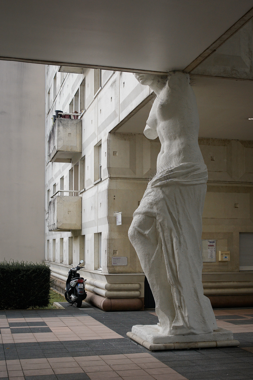 Примечание: фото на превью обрезано сайтом. На сайт загружалось фото в вертикальном формате Название: судьба Венеры Архитектор с корнями из СССР Нуньес-Яновский построил в пригороде Парижа жилой дом, буквально стоящий на плечах Венер Милосских вместо колонн. Фотография поднимает дискуссию на тему: насколько уместна ирония в архитектуре и где как определить границу китча в зодчестве