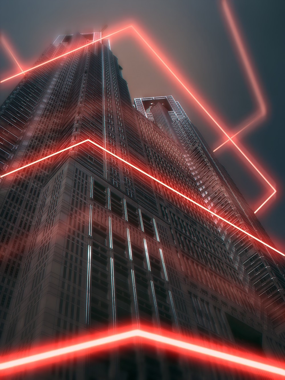 Кадр назван «Возвышение» не случайно: это визуализация рывка. Неоновые красные линии пронзают статику здания, превращая архитектуру в символ стремительного технологического роста. Красный здесь — не просто цвет, а воплощение самой быстрой энергии. Фотоаппарат leica x1, программа - PhotoShop