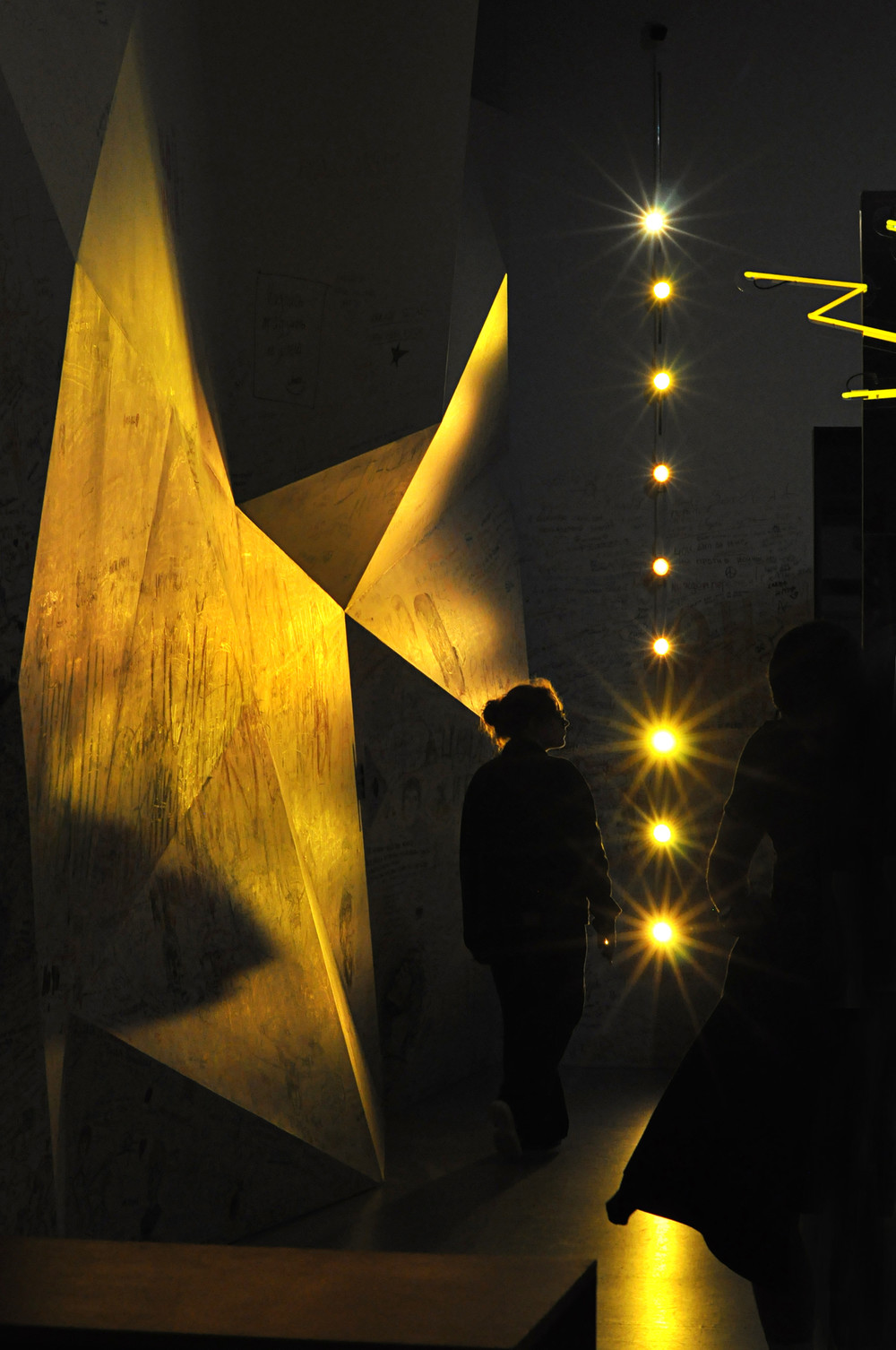 «Грани звезды по имени Солнце» Янчевская Ирина 2022г. Разглядеть в гранях свет ушедшей звезды... Этот кадр сделан на выходе с выставки «Виктор Цой. Путь героя» в 2022г, выполненной бюро Planet 9 в ЦВЗ «Манеж». Именно в этом месте мы, переполненные впечатлениями, музыкой... а еще воспоминаниями юности проходим через граненый портал, на котором, как на стене Виктора Цоя со Старого Арбата, люди оставили надписи и наскальные рисунки - своего рода книга отзывов в 3D пространстве. На выставке запомнились светящиеся глаза людей, не молодежи а тех, для которых Виктор - это их юность, искания, юношеский максимализм... Глаза, заново открывающие для себя множество граней звезды, неумолимо оставшейся в прошлом....