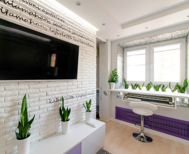 Общая площадь: 20 кв.м. Год реализации 2013. Фотограф Антон Власов. Дизайн-студия «Уютная квартира». Эта небольшая квартира – настоящее пособие по колористике, где отлично «изложено», как разнообразить и одновременно объединить интерьер при помощи цвета. Сочетание белых стен с фиолетовыми и серыми аксесуарами создает ощущение легкости, нежности и романтичности. В квартире нет случайных деталей – даже кухонные принадлежности перекликаются с общей цветовой гаммой.