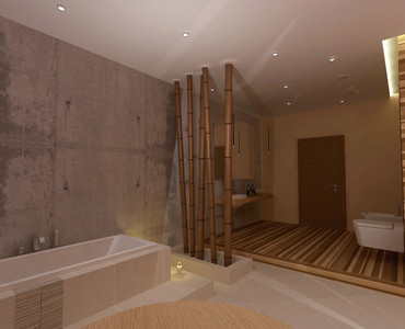 Закат над африканской пустыней, одно из самых романтичных зрелищ. И чтобы сполна прочувствовать всю его прелесть, достаточно просто чувствовать, видеть, ощущать. Оставить сердце, ум и интерьер открытым - цель данного проекта ванной комнаты. Дать волю глазам наслаждаться прекрасным панорамным видом, дать волю лучам заходящего солнца, пробивающимся сквозь декоративное панно, спешить последний раз в уходящем дне, поласкать тело, погруженное в чуть теплую, успокаивающую воду; а теням - расползаться по полу, с целью захватить в плен кирпичную стену, бетон и все пространство. За шпонированным выступом притаился сумрак, ждущий свой черед, а следом - ночь. В интерьере соединены самые характерные черты урбанистической городской среды и природного пространства. Бетон, кирпичная кладка, камень, песок, вода, дерево. Синтез суеты человеческой и спокойствия природы. Материалы фабрики Vitra использованные в проекте: сантехника: унитаз Vitra T4, ванна Vitra Neon, раковина Vitra